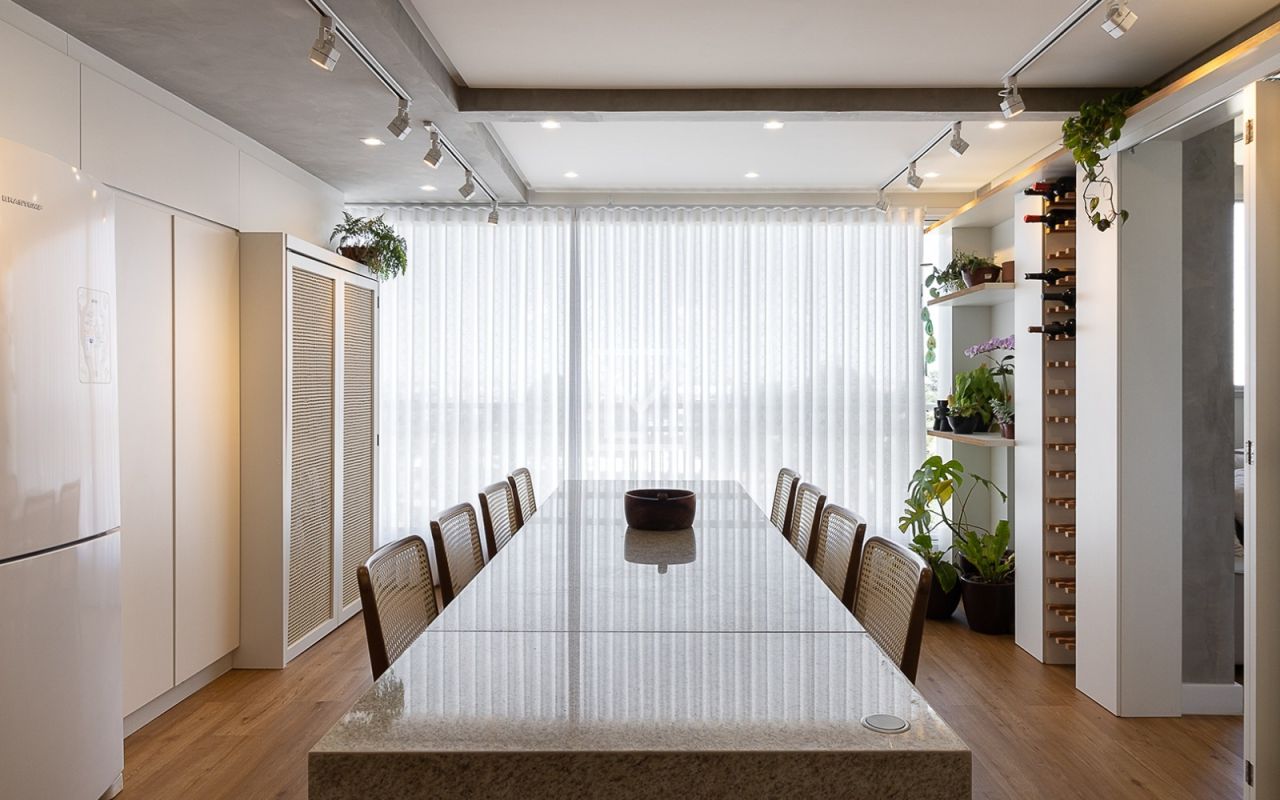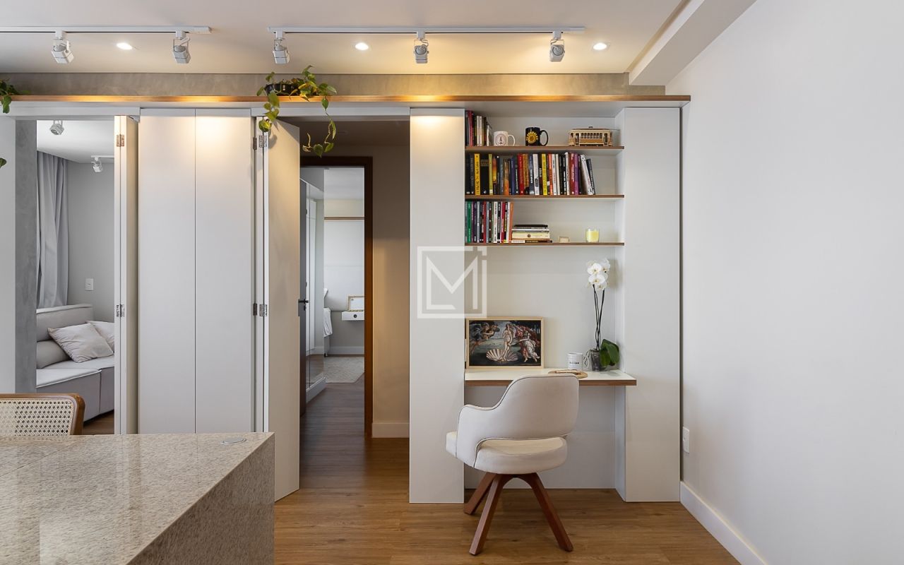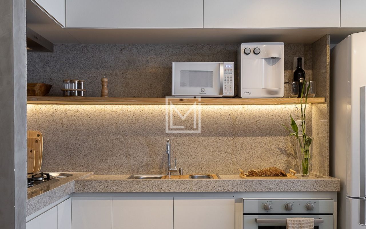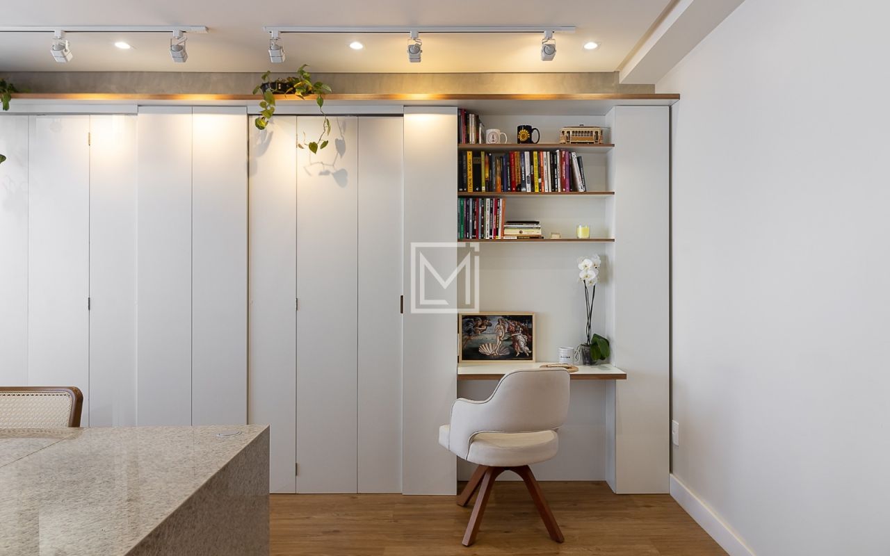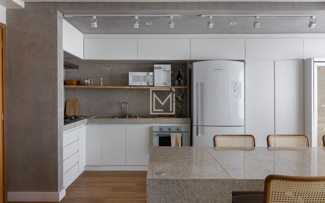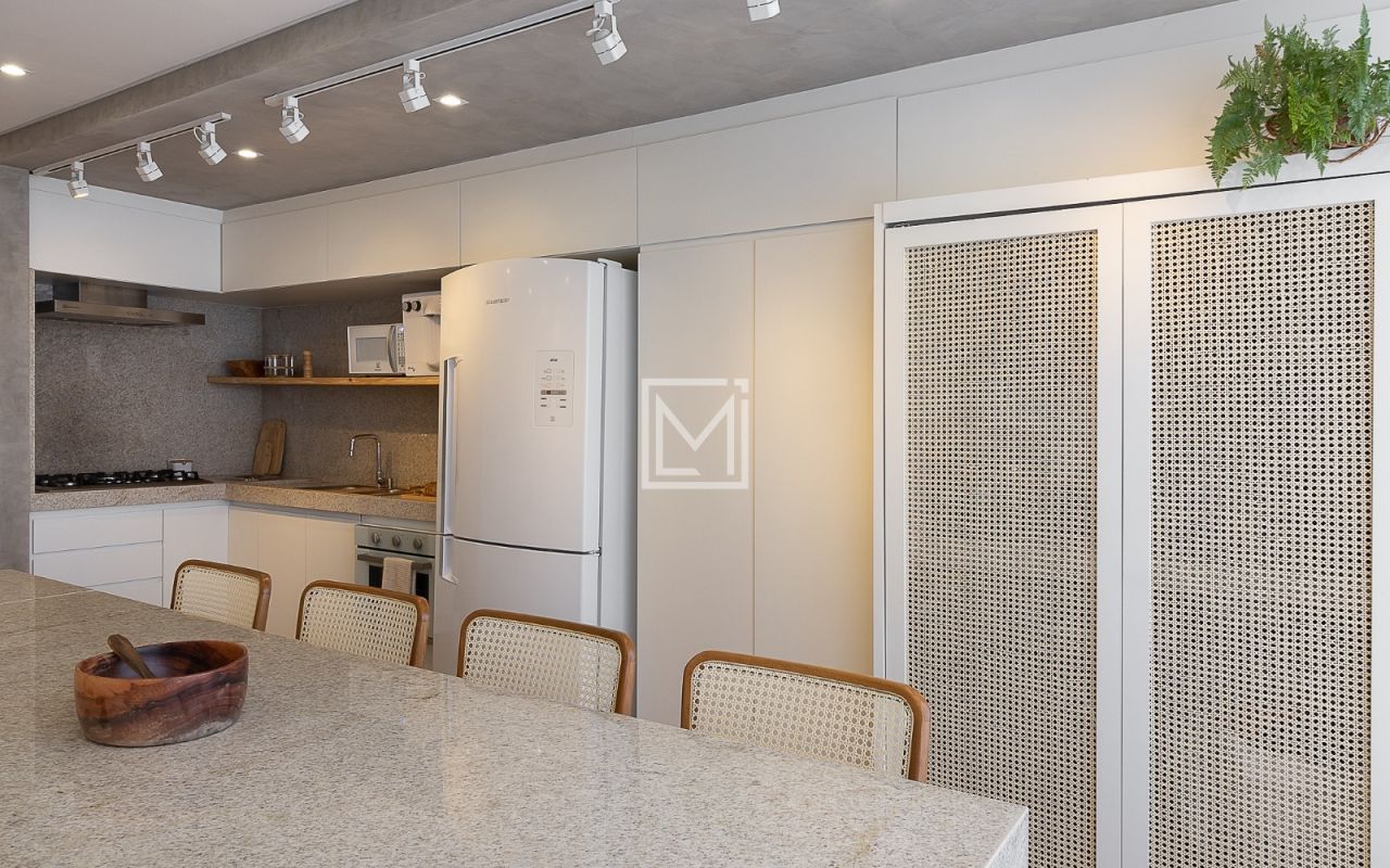 Apartamento 100% reformado em 2022, contando com armários planejados completos na suíte principal e toda cozinha, mesa central de pedra para 8 lugares em cozinha integrada, pele de vidro na varanda, adega para 51 vinhos, Incluso fogão cooktop e coifa + forno novo embutido Fischer Infinity.