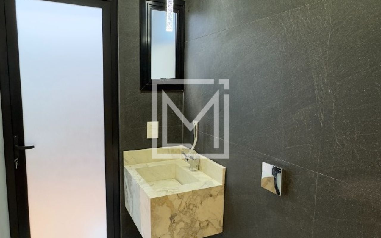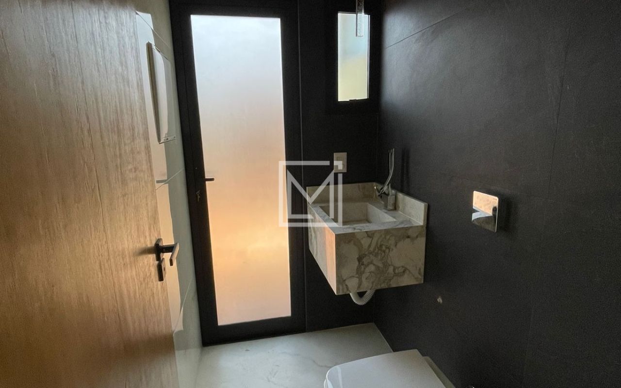 Lavabo com bancada em mármore michelangelo, lavanderia com depósito amplo, corredor iluminado com acesso as suítes.