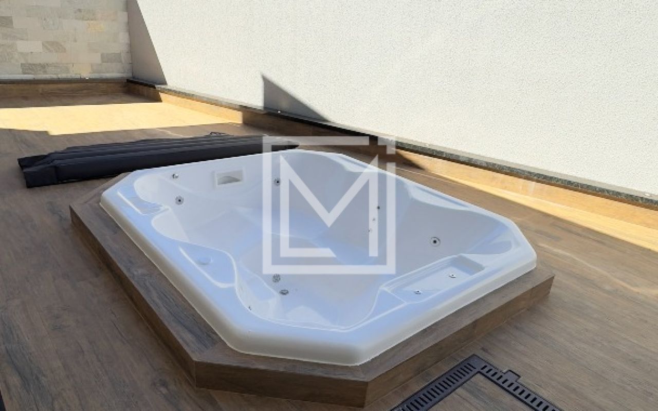 Área Gourmet com churrasqueira, ofuro e ducha externa.